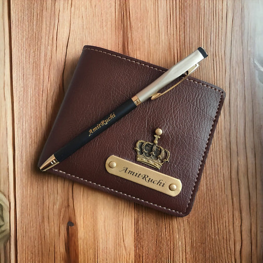 Personalised Men's Wallet, Metal Keychain & Premium Pen